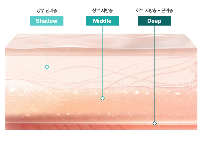 피부의 얕은 층부터 깊은 층까지 작용하여 콜라겐 생성을 돕고